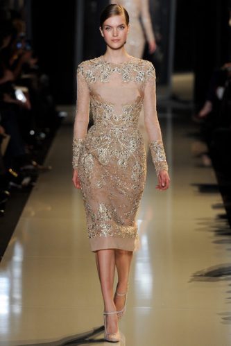 Elie Saab Spring 2013 couture. short beige dress long sleeves