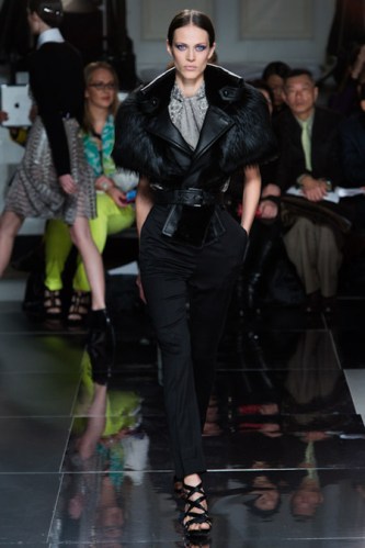 Jason Wu Fall 2013 black fur leather jacket