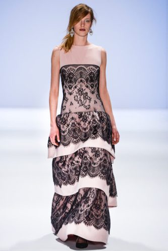 Tadashi Shoji Fall 2013 pink and black lace dress