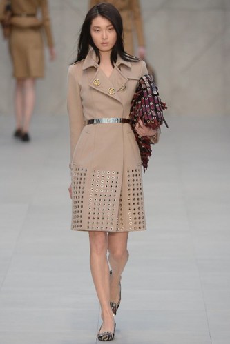 Burberry Prorsum Fall 2013 – beige coat with silver detailing