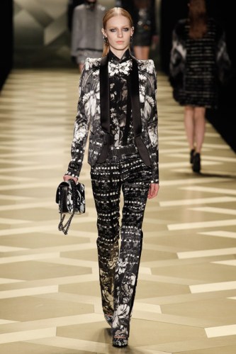 Roberto Cavalli Fall 2013 – black & white print jacket and pants