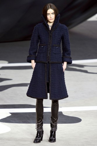 Chanel Fall 2013 – Navy Blue high collar jacket and skirt
