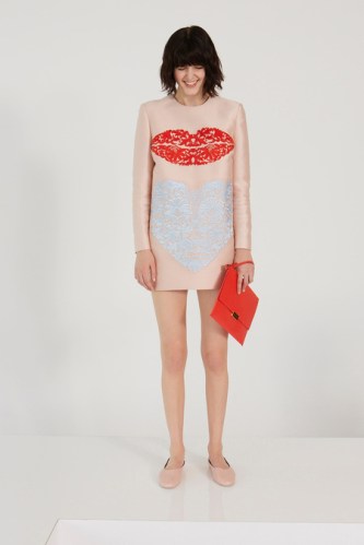 Stella McCartney Resort 2014 – Peach longsleeved dress with lip and heart